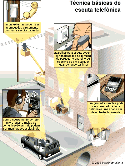 É um sistema muito conveniente, pois é muito fácil de instalar e de fazer a manutenção. Infelizmente, é muito fácil de se explorar também. O circuito, com sua conversa, sai de sua casa passando pela vizinhança e por várias estações comutadoras entre você e o telefone, na outra extremidade. Em qualquer ponto deste trajeto, alguém pode adicionar uma nova carga ao circuito eletrônico, da mesma forma que você pode conectar um novo aparelho a uma extensão. No grampo telefônico, a carga é um dispositivo que transforma, novamente, o circuito elétrico no som de sua conversa.